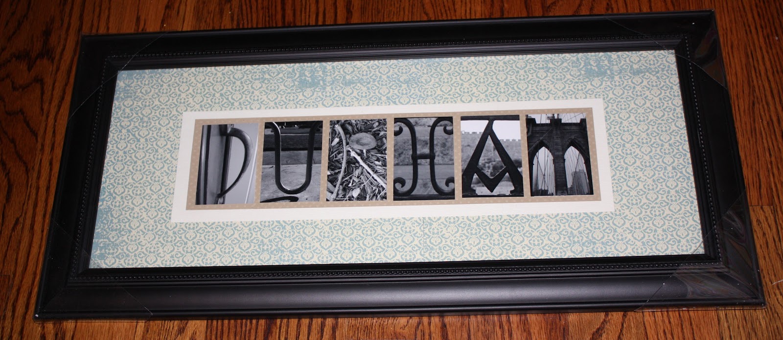 I looked at Michaels, Home Depot, and Hobby Lobby for the clear tiles and coudn't find them to save my life. Then, when I looked back at the link above I saw that you can order them. THEY'RE SO CHEAP!! I ordered 20 of the squares and 20 of the rectangles and I think my total order was $13 (including shipping). I added scrapbook sticker letters as initials before I glued the paper to the tiles. I got the little doodads that you glue to the titles to hang it from the ribbon at Michaels in the jewelry aisle. Here are a few pics of the final product. They're also good stocking stuffers.